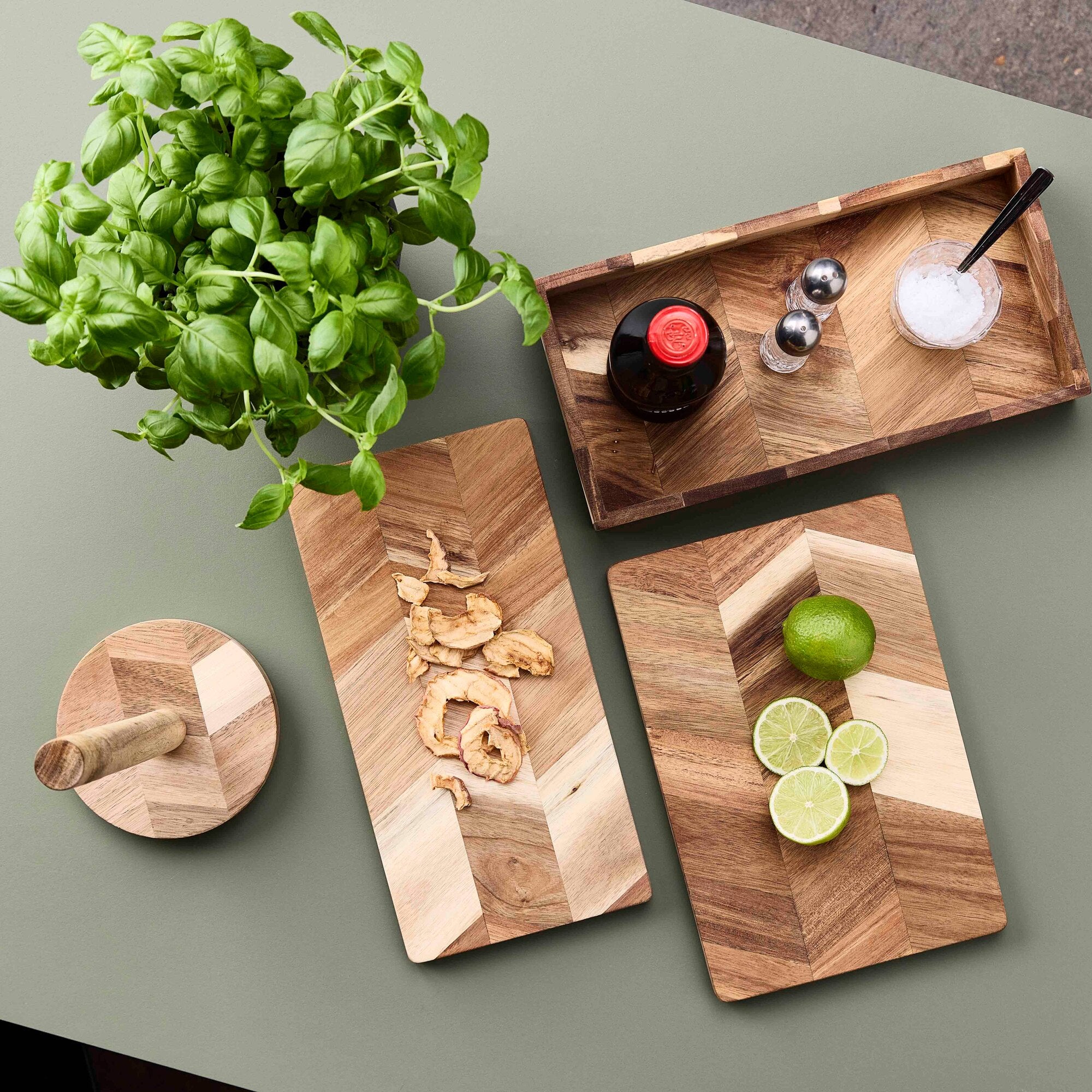 Acacia wood is an extremely solid material and, if treated correctly, is almost impossible to wear out. Never put your cutting board or other wooden products in the dishwasher. Instead, wash it by hand, dry it thoroughly with a tea towel and let it air dry completely before putting it away.